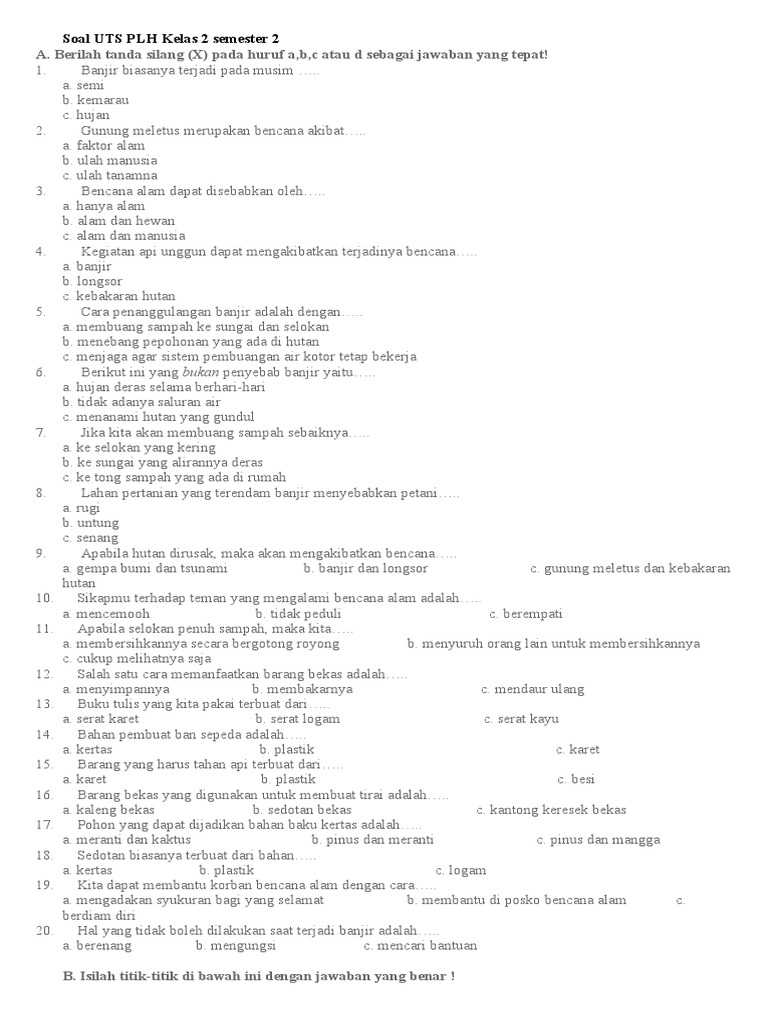 Pendidikan Lingkungan Hidup (PLH) bukan sekadar mata pelajaran tambahan di sekolah, melainkan fondasi penting untuk membentuk karakter anak-anak agar menjadi individu yang peduli, bertanggung jawab, dan memiliki kesadaran ekologis sejak usia dini. Di jenjang Sekolah Dasar, khususnya kelas 3, materi PLH menjadi sangat relevan dan praktis, terutama pada semester kedua yang seringkali berfokus pada aplikasi nyata dalam kehidupan sehari-hari. Artikel ini akan mengupas tuntas mengapa PLH di kelas 3 semester 2 sangat krusial, materi apa saja yang biasanya diajarkan, bagaimana strategi pembelajaran yang efektif, serta bagaimana bentuk soal yang relevan untuk mengukur pemahaman dan perubahan perilaku siswa.